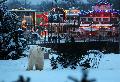 | Zoo Hannover: | Kunterbuntes Kanada im Winter-Zoo Yukon Bay by night! Kanadisch bunt leuchten die Holzhäuser, mit Lichtgeschwindigkeit sausen Santas Rentiere über die Dächer, am offenen Feuer röstet Flammlachs, fröhlich dreht sich das nostalgische Riesenrad in den Abendhimmel: Mit Unterstützung des Energiedienstleisters E.ON Avacon präsentiert sich ab jetzt auch die neue Kanadalandschaft Yukon Bay als Teil des Winter-Zoos „by night“! Im Winter-Zoo auf Meyers Hof und in Mullewapp sorgen noch bis zum 09. Januar rasante Rodelrampen, Schlittschuhbahnen und nostalgische Kinderkarusselle – darunter eine Dampfschiffschaukel und ein Mini-Riesenrad – für beste Winter-Laune. Jetzt schwimmen auch Eisbären, Robben und Pinguine bis zum 09. Januar im abendlichen bunten Lichtermeer von Yukon Bay. Tipp: Vom Riesenrad aus bietet sich ein herrlicher Panorama-Blick über den Hafen und den weihnachtlich beleuchteten Marktplatz. Der Weg nach Yukon Bay führt ab 16 Uhr vom Winter-Zoo auf Meyers Hof über die Australienlandschaft Outback durch den abends geheimnisvoll stillen Dschungelpalast. „Der Winter-Zoo begeistert bereits seit fünf Jahren die Besucher, aber mit Yukon Bay by night übertreffen wir alle Erwartungen und lassen nicht nur Kinderaugen strahlen“, freut sich Zoodirektor Klaus-Michael Machens. Neu in diesem Jahr: Rodeln und Schlittschuhlaufen sind im Eintrittspreis enthalten! Mit der Eintrittskarte oder der Jahreskarte können die Besucher den Rodelberg auf Mullewapp hinunter sausen so oft sie mögen und ihre Pirouetten auf dem Eis perfektionieren. Ein tolles Angebot besonders für Familien! Die Winter-Zoo-Highlights in Yukon Bay: Fotopoint „Santa Claus‘ Himmelsreise“ Der große rot gepolsterte Schlitten des Nikolaus‘ steht jetzt als neuer Fotopoint in Yukon Bay und wartet auf Passagiere. Sieben Rentiere ziehen den Schlitten und nehmen Anlauf zum Sprung in den Himmel über das Dach der Unterwasserstation: Ein raffiniertes Leuchtsystem setzt die Umrisse der Rentiere so in Bewegung, dass sie zu galoppieren und jeden Moment mit dem Schlitten Richtung Himmel abzuheben scheinen. Der tierische Weihnachtsbaum Ein fünf Meter hoher Weihnachtsbaum ist das neue Winter-Wahrzeichen in Yukon Bay. Der spektakuläre, 600 kg schwere Baum ist – passend zur Hafenkulisse mit Schiff und Kran – aus Stahlblech gefertigt. An Stelle von Lametta und Kugeln zieren die Silhouetten von Eisbär, Robbe, Wolf, Pinguin und Co. die Seiten des Baumes. Nostalgisches Riesenrad Im nostalgischen Dampf-Mini-Riesenrad geht es zum luftigen Überblick über Kanada. Das rot-weiße Riesenrad mit goldener Krone steht neben der Lorenbahn am Hafenbecken und wird interessiert von den Eisbären beobachtet. Flammlachs in Yukon Bay Mit traditionellen Fisch-Spezialitäten verwöhnt das Gastro-Team des Zoos in Yukon Bay: Über offenem Feuer wird Flammlachs zubereitet. Auf Buchenholzbretter gespickt, wird der Flammlachs sanft neben dem Feuer gegart und entfaltet über dem Feuer seine unwiderstehliche Note. Und die brennenden Scheite im Feuerkorb ziehen jeden Betrachter magisch in ihren Bann! (23.12.2010, 15:03) | ||