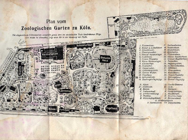 Noch eines drauf setzt der Zooplan Frankfurt von 1911, denn der gibt mit dünner Linie und Pfeilen sogar einen Weg an, der garantiert, dass man nichts verpasst, wenn man sich an ihn hält. (27.11.2007, 18:45)