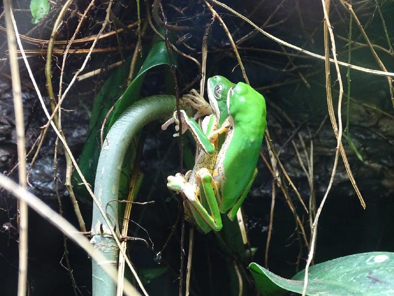| cajun: | Frosch- Zuzug :-) "Neue Bewohner im Tierpark Zu den Besonderheiten im Tierpark Chemnitz zählt sicherlich das Vivarium, welches über 80 verschiedene Amphibien-Arten beheimatet. Darunter finden sich auch viele Raritäten – also Arten, die nur selten in zoologischen Einrichtungen gezeigt werden oder nur noch selten in der Natur zu finden sind. Zu erster Kategorie zählt der Schwimmfrosch. Diese in Asien beheimate Froschlurch-Art wird europaweit außer bei uns nur noch im Museum König Bonn und im Zoo Wroclaw (Polen) gezeigt. Da es sich beim Schwimmfrosch um eine relativ kleine Art handelt – adulte Tiere werden ca. 3,5 cm groß – so sind auch die Kaulquappen schwer zu entdecken. Wie bei fast allen Froschlurchen so durchlaufen auch die Larven des Schwimmfrosches eine Gestaltwandlung im Wasser. Diese endet mit dem Landgang des vollständig entwickelten Tier. Zwar gilt der Schwimmfrosch auf der Roten Liste gefährdeter Arten als nicht gefährdet, sein Bestand nimmt aber rapide ab. Das liegt vor allem am Heimtierhandel. Als pflegeleichter Aquarium-Bewohner wird er häufig in Privathand gehalten. Da hier Nachzuchten eher selten sind, werden immer wieder neue Tiere aus der Natur entnommen. Da Amphibien als die am meisten bedrohte Wirbeltierklasse weltweit gelten, leisten wir mit unseren regelmäßigen Nachzuchten bei diversen Arten einen wichtigen Beitrag zum Erhalt ebendieser." Quelle:https://www.facebook.com/Chemnitz.Tierpark/?locale=de_DE (30.06.2023, 15:45) | ||