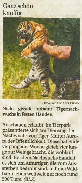 | WolfDrei: | Vier Tage alte Tigerbabies wurden gezeigt? Dabei haben alle Fotojournalisten eine ausführliche Pressemitteilung erhalten. "Vor 2 Monaten geboren" stand da. Leseschwäche! (17.06.2015, 16:18) | ||