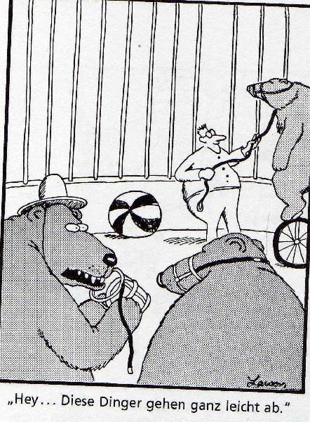 | Michael Amend: | da unterschätzt Gary Larson uns Tierpfleger, wir haben noch viel bessere Ideen... (11.01.2008, 19:28) | ||