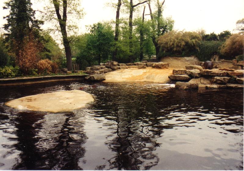 | Andreas Knebel: | Ich glaube, das Bassin ist schon ein gutes Stück größer als 6x6m. Für die Anzahl der Flusspferde natürlich trotzdem zu klein. Ich hab sogar ein Foto (leider schlechte Quali) vom Innenbecken gefunden. Nicht dass man da viel erkennen könnte... (02.09.2009, 20:51) | ||
