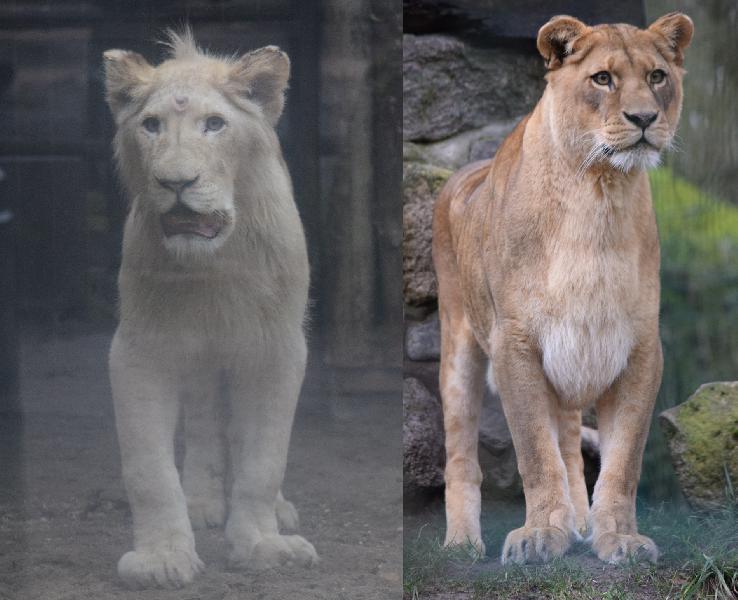 | Emilia Grafe: | Ich war am Montag kurz mal in Eberswalde. Eigentlich war das Ziel nur, einmal bei den Löwen vorbeizuschauen, um zu gucken, ob der kleine Löwenkater aus Magdeburg in Eberswalde zu finden ist. Tatsächlich habe ich ihn dort sehen können, noch im separaten Absperrgehege der Löwen und sehr verunsichert- ängstlich, verschwand eigentlich immer sobald jemand vorbei kam direkt im, ihm jederzeit zugänglichen, Innengehege. Mich persönlich würde ja noch interessieren welches der männlichen Tiere aus Magdeburg jetzt nach Eberwalde ging, aber den Namen des Katers konnte uns auch eine Pflegerin nicht sagen. Ansonsten gab es im September nochmals eine Handaufzucht bei den Servalen, also insgesamt 4 (davon allein 3 Handaufzuchten?) Jungtiere in 2017, soweit ich das mitbekommen habe und die drei im Mai & Juni geborenen wurden schon wieder abgegeben. Die Katze wurde am 17.9.17 geboren und wurde wie die anderen beiden Handaufzuchten aufgrund von wunden Stellen durch übermäßige Pflege des Muttertiers von der Mutter getrennt. Ansonsten leben der aus Ashford stammende Kater und die ehemalig aus Rhenen stammende Katze auf der Tigeranlage zusammen und scheinbar ist auch Nachwuchs in Aussicht (https://www.moz.de/artikel-ansicht/dg/0/1/1572365/). Anbei: der weiße "magdeburger" Löwe mal im Vergleich zu einem normalfarbigen Tier aus Eberswalde (31.01.2018, 21:50) | ||