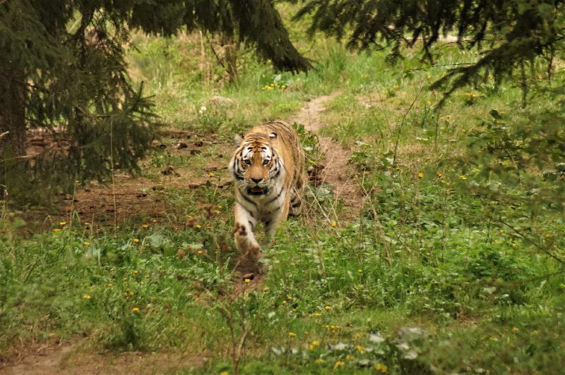 | W. Dreier: | überquert die Wolf-Bären-WG, den Graben und das Damhirschtal - Ende? Tiger - Vielfraßanlage - wieder sah ich nur einen Tiger , dafür "tigerte" der Vielfraß am Tigergehege vorbei, um letztlich über mehrere trockene Äste eine Fichte hinaufzuklettern. In etwa 4 m Höhe gab es dann einen Astquirl - breit genug , um zu schlummern (07.05.2022, 14:30) | ||
