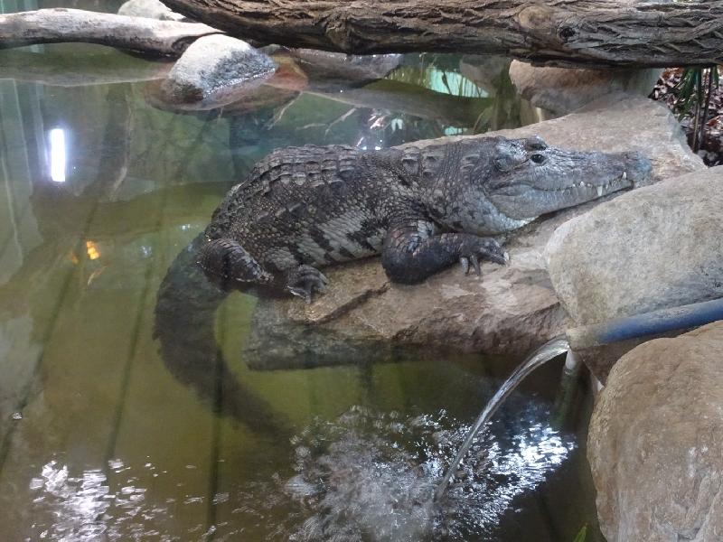 | Regina Mikolayczak: | Weiteres Interessantes (ich war länger nicht da), das Tropenhaus ist umgebaut und ziemlich leer bzgl. Freiflieger. Ich habe nur Zebrafinken gesehen.. ausgeschildert waren gar keine. Auf der rechten Seite ist eine große Anlage für Sporn- und Pantherschildkröten entstanden, links war eines der großen "Glaskästen" mit zwei Tigerpytons besetzt. Das zweite (lt. Schild Graue Erdnatter) wurde noch umgebaut und auch das Terrarium am Ausgang (früher -glaube ich - Erdschildkörten) war Baustelle. Dafür hatte ich mal Glück und die Scheiben waren schön sauber, so dass ich das recht seltene Beulenkrokodil schön fotografieren konnte (sogar auch von Draußen durch die Fensterscheibe!)- Ich stell hier aber nur das Bild von drinnen ein. (27.07.2025, 09:41) | ||