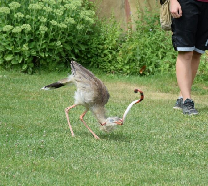 | Emilia Grafe: | Nochmal ein Bild von den in der Tiershow vorgestellten Jagdtechniken der Rotfußseriemas (17.07.2018, 22:43) | ||