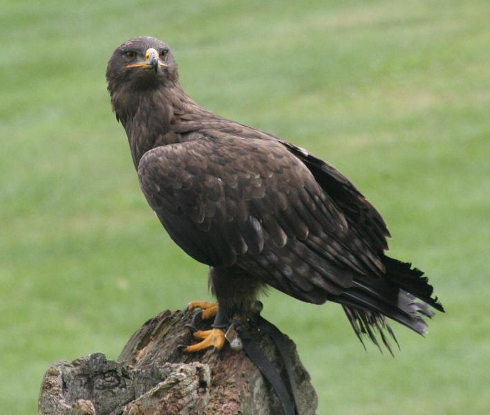 | Vogelpark Marlow: | Ein Bandit im Vogelpark Ein Bandit treibt sein Unwesen und zwar pünktlich zu der Greifvogelshow um 11 Uhr und um 15 Uhr im Vogelpark Marlow. Bandit ist ein Steppenadler und hält seine Trainerinnen ganz schön auf Trab, wobei er mit seinen 17 Jahren im besten Alter ist. Steppenadler leben, wie es der Name bereits sagt in Steppen und in offenen mit Gebüsch bewachsenen Regionen Osteuropas bis Zentralasiens. Da es in den Steppen nur sehr wenige hohe Bäume gibt, haben es sich diese Adler zu Eigen gemacht ihre Horste auf niedrigen Büschen, auf Sandhügeln oder gar auf dem Boden zu bauen. Sie sind elegante Flieger, die ihre Beute bei halsbrecherischen Geschwindigkeiten im Sturzflug schlagen. Wenn auch Sie die Flugkünste von Bandit aus nächster Nähe bestaunen möchten, dann besuchen Sie den Vogelpark inmitten der Grünen Stadt Marlow. Die Greifvogelshow und die Flugshow „Begegnung mit Tieren“ finden noch bis 31. Oktober täglich statt.    Bild: Bandit wartet darauf, bis ihn die Falknerin mit einem weiteren Leckerbissen lockt. (12.10.2010, 10:10) |