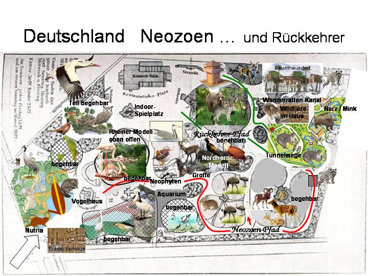 | Michael Gradowski: | @Michael Mettler: Selbst bei deinen Einzelbeispielen bleibt meine bis jetzt nicht beantwortete Frage: Wo anfangen bzw. aufhören? Warum diese Arten und andere wieder nicht? Welche Kriterien sollen denn da eine Rolle spielen? Ich bleibe dabei, daß es keine gute Idee ist und der Didaktik vielleicht sogar hinderlich. Denn ganz so doof, wie ich sie in meinem letzten Post absichtlich dargestellt habe ;-), sind die meisten Besucher dann doch nicht und könnten sich dann schon fragen: Känguruhs im Europateil? Was soll das? Was die Infovermittlung betrifft, wäre man mit meinen unten erwähnten Schautafeln etc. doch auf einem richtigen Weg. Wenn man in jedem Komplex eine Beispielanlage für Neozoen einbettet, könnte das einfach störend oder auch verwirrend wirken. Selbst ich, der schon versteht, was du aufzeigen willst, würde es befremdlich finden, wenn ich nach Rothirsch und Wolf plötzlich vor solch Exoten wie Bennetkänguruh, Nandu oder Ochsenfrosch stehe, nur um dann mit Reh und Luchs weitere Europäer auf dem Schirm zu haben. Und warum kann man das Geokonzept denn gleich in die Tonne treten, wenn man auf das Zeigen der Neozoen verzichten will? In meinem Fall wäre die Infovermittlung durch die Schautafeln doch gegeben, da brauchts das Ausstellen der entsprechenden Tierarten nicht. (24.07.2015, 15:03) | ||