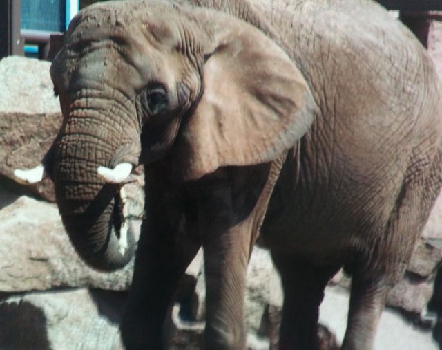 | Jan Jakobi: | Zum Alter: Dashi wurde ca. 1968 geboren und im Dezember 1969 kam sie in den TP. Sie war also ca. 48 Jahre alt. Im Teil 1 der Friedrichsfelder Elefanten-Chronik gibt es ein Foto von Dashi (mit Dombo und Bambi) vom 31.07.1970. Zu dem Zeitpunkt war sie ca. 2 Jahre alt, im Vergleich mit den TP-Afrikaner-Kälbern kommt das ungefähr hin. Anbei Dashi im März 2004, mein ältestes "Passfoto" von ihr. (19.09.2016, 14:02) | ||