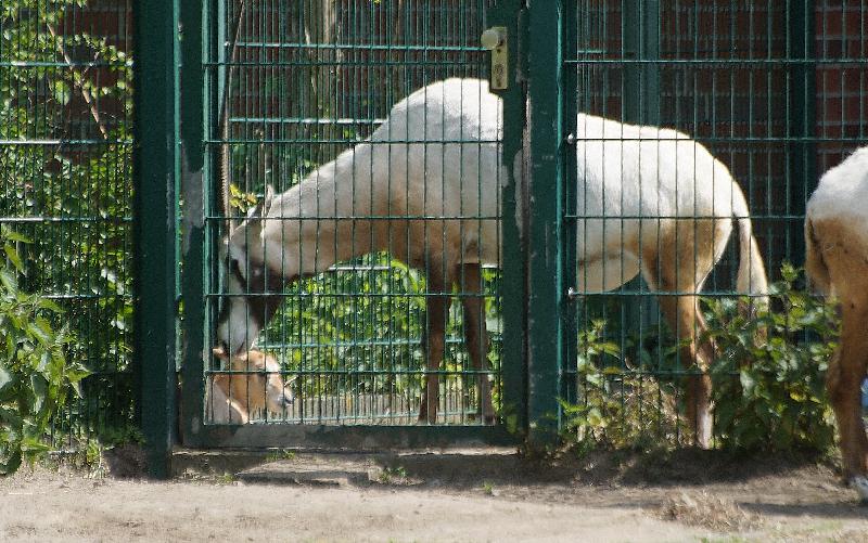 | W. Dreier: | Zunächst in aller Schnelle: beim ersten ``Vorbeilauf`` rot-weiße Absperrungs/Warnbänder in der Gerenukanlage, beim 2. mehre Pfleger. Vielleicht schon der Nachwuchs?? - Und dann erschien er: ein neuer Gerenukbock, nach vorsichtiger Befragung - nun, woher wohl? (30.03.2021, 15:30) | ||