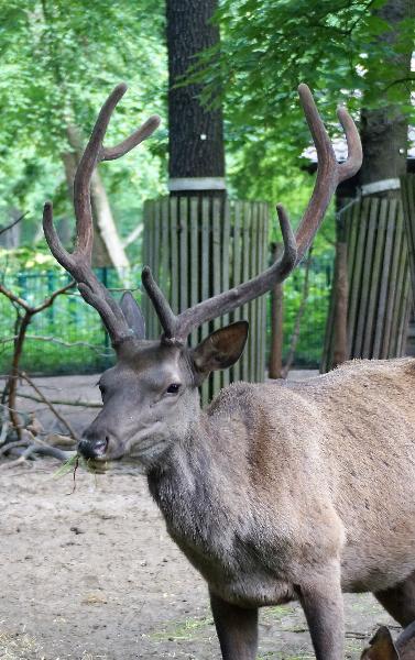 | WolfDrei: | Selbiges Kletternetz an der Cafeteria ist offensichtlich frei gegeben worden - noch hängen dort einige Luftballons. Ansonsten hielt es mich nur 2 Stunden im TP - zu heiß. Doch noch Nachwuchs beim Maral. Das Kalb hatte noch "Kippohren", wurde wohl am 12. -13. 9. geboren. Nachwuchs auch noch beim Wisent. Eine kleine`"Schwejkiade": die Umstellung von Alpakas und Vicunjas hatte sich dadurch notwendig gemacht, dass europäische Zoos die Tiere im TP eingestellt hatten, um sie dann Richtung USA zu bringen . Der Zoo in den USA mußte- aus welchen Gründen auch immer - passen, So können also 9 Vicunjas besichtigt werden! Anbei das Maralkalb (13.09.2016, 18:33) | ||