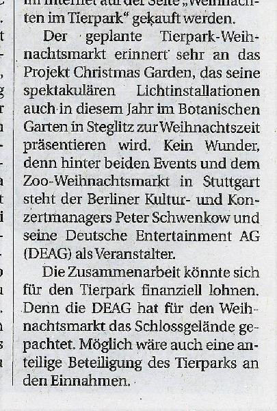 | Mark Meier: | Ansonsten schrieb kürzlich die Berliner Zeitung, dass der Tierpark 2015 erstmals seit Jahren einen kleinen Überschuss erwirtschaften konnte. Zwar nur ca. 400.000 aber immerhin. http://mobil.berliner-zeitung.de/berlin/lichtenberg-tierpark-legt-erstmals-positive-bilanz-vor-24512612?originalReferrer=https://www.google.com/ (10.08.2016, 09:42) | ||
