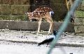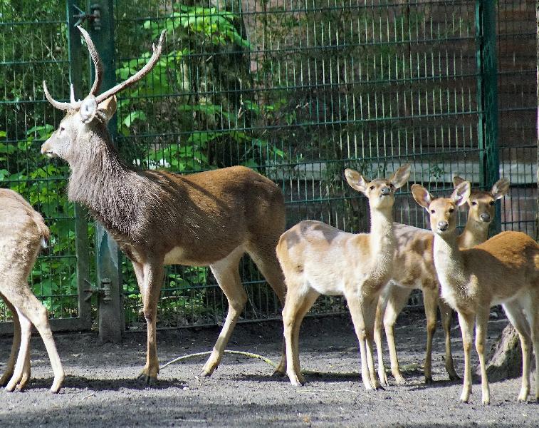 | WolfDrei: | Nach drei Wochen Abwesenheit ein Wiedereinstieg - mit einem afrikanischen Schnupfen (ist ja dort Winter), so nur ein Kurzbesuch. Zur Holzverkleidung: Ich glaube, dass die unterschiedliche Art nur Holz oder Metall-Holz die Einwohnereigenschaften berücksichtigt. Meerschweinchen, Hausziegen und -schafe knabbern nun mal an den doch recht dünnen Stangen: Das Metallgitter bleibt also. - bei Schweinen kann es entfernt werden. Bliebe die Verblendung bei den Gänsen - die knabbern eher nicht. Plansche: der Berliner versteht eigentlich darunter etwas anderes als das Entstandene. Klar ist : stehendes Wasser mit Badenden ist nach den heutigen Hygienestandards praktisch ausgeschlossen. Brauchen wir also eine neue Definition für Plansche (so wie Rückbau für Abriss). Aber wenn es Freude macht! Die Umgebungsseile sind natürlich nur juristisches Hindernis. Tierisches: Das Berberhirschkalb ist jetzt Untermieter bei den Timorhirschen, in ca 5-6 Monaten geht es ins richtige Revier. Bei den Sambaren wird es nochmals Nachwuchs geben, das Erstgeborene des Jahres ist ein Bock. Wapiti und Maral werden ihren Kopfschmuck ?zeitnah? einbüßen. Größte freudige Überraschung ist der Moschustiernachwuchs, Vater von 09, Mutter vom 2013. Obwohl ich dort 30 Minuten stand und die Mutter aktiv war wie sonst nie - keine Sichtung. Mein letztes Tierparkkitz habe ich ca 1972 aufgenommen (siehe ZTL). Der fällige Silberäffchennachwuchs hat leider nicht überlebt. Ansonsten überall Vorbereitung für das Wochenend-Barockfest, die Gesangesübungen dazu am Schloss lassen Angenehmes erwarten. Anbei der Berberhirschnachwuchs (19.08.2016, 22:43) | ||