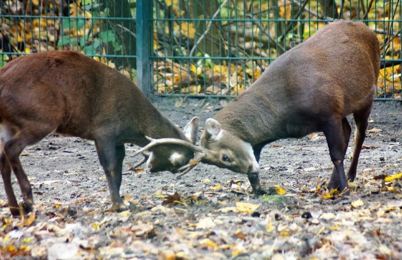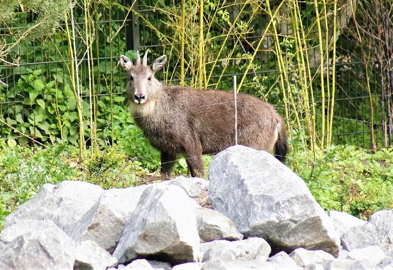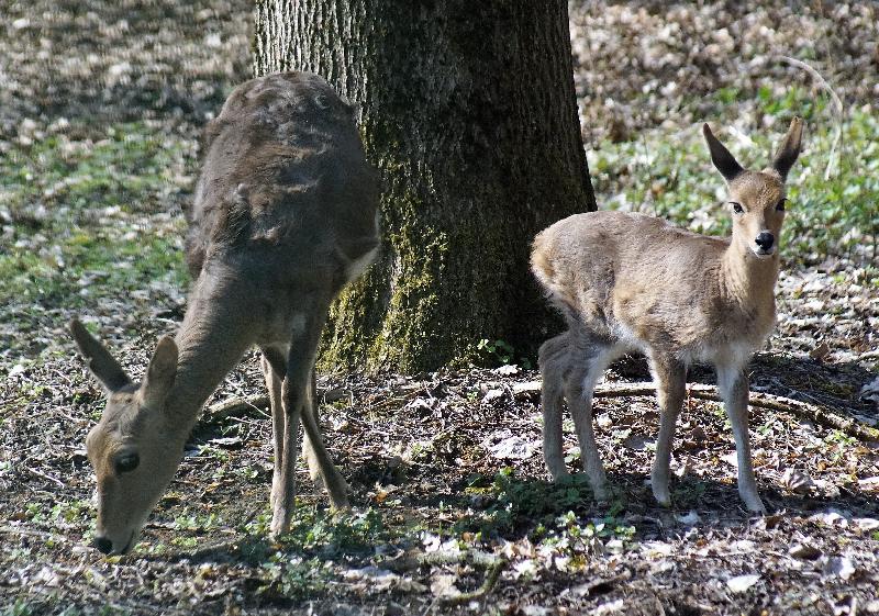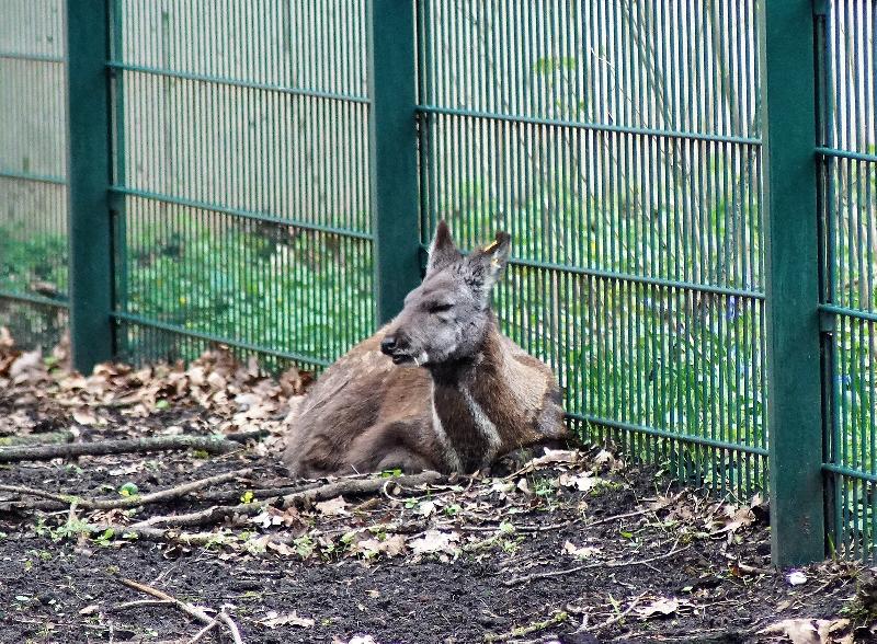 | W. Dreier: | Weiteres zum Dienstag - etwas Vogel-lastig. Allgemeines: eine 2. Geburt bei den Vietnam-Sikas, beide weiblich Durch die Geburt bei den Sichuans wurde der Bulle in das Goldtakingehege ``verlegt``. Wir wunderten uns, dass plötzlich 6 Goldtakins im Seitengehege waren, Nachdem seit 2 Wochen kein Sibirien-Uhu zu sehen waren - nun: europäische Uhus. (Nähe Möwenkuppel) Nun: die 4 Barasinghas (21.04.2021, 17:15) | ||