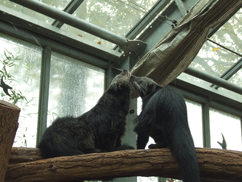 | cajun: | Über seine Facebook Seite meldet der Zoo Dortmund den Zuzug eines neuen Binturong. Das Männchen "Senshi" kam aus dem ZooParc de Trégomeur in Frankreich (* 8. Juli 2021) "Senshi" wird bereits mit dem vorhandenen weiblichen Tier im ehemaligen Menschenaffen-Pavillon in Kontakt gebracht. Im Gegenzug zogen die beiden Fleckenmusangs, die bis dahin die eine Hälfte der Anlage bewohnten, in die freie Anlage bei den Larvenrollern. Die beiden Binturongs sind Teil des Europäischen Erhaltungszuchtprogramms (EEP) bzw. EAZA Ex situ Programmes, welches im Jardin des Plantes in Paris koordiniert wird. Quelle:https://de-de.facebook.com/ZooDortmund/ (05.01.2023, 08:36) | ||