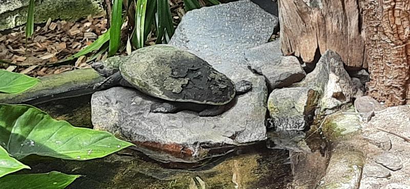 | Adrian Langer: | Anschließend ging es für mich in den Zoo Landau. Da mein erster Besuch während der Coronazeit stattfand und aus diesem Grund das Affenhaus geschlossen war (leider befindet sich darin die Madagassische Schienenschildkröte des Zoos) war ein Zweitbesuch für die Sichtung nötig geworden! ;) Sehr schön finde ich die neue Philippinenanlage, welche zu meinem letzten Besuch kurz vor der Eröffnung stand. Nachdem die Prinz-Alfred-Hirsche und Pustelschweine ausgezogen waren wurden deren alte Anlagen der Afrikanischen Savanne zugeschlagen. Alles in allem wirkt diese nun besser strukturiert und deutlich großzügiger als zuvor. Ich bin gespannt, was zukünftig in Landau geplant ist! Neben der Madagasischen Schienenschildkröte demzufolge meine Erstsichtung dieser Art) hatte ich sogar Glück bei den Philippinenstachelschweinen sowie den Nördlichen Borkenratten. Ist schon praktisch, wenn die vom Pfleger aufgescheucht werden und anschließend etwas zum mümmeln bekommen! ;) Anbei: Madagassische Schienenschildkröte (01.06.2023, 08:26) | ||