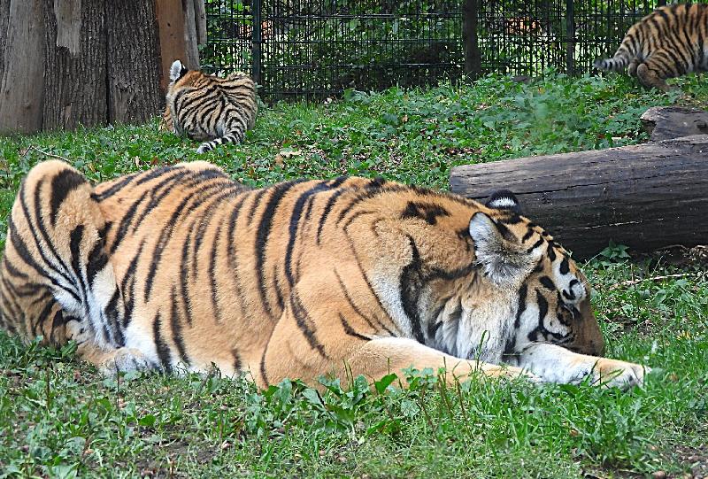 | Regina Mikolayczak: | Nun aber die Tigerin mit ihren vier Kindern... kurz nach 08.00 Uhr. Später (ab ca. 10.00 war ich ab und an mal dort) waren die Kleinen gestern nicht zu sehen und Mama sah ich nur weit hinten, von hinten und im Schatten. (10.08.2025, 09:14) | ||
