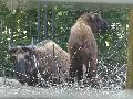 | W. Dreier: | Sehr viel später dann auf der Außenanlage die nun dort auch lebenden Capybaras , hier mit einem Jungtier der Weißnasenbären. (10.10.2025, 17:30) | ||