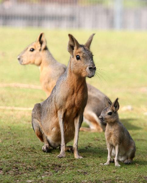 | Wilhelma: | Zoologisches Rätselraten in der Wilhelma Riesenmeerschwein auf Stelzen, Hase mit Spock-Ohren, Pampas-Wolpertinger und ähnliche Nettigkeiten müssen sich die „Maras“ als zoologische Zuordnungsversuche aus Kindermund anhören. Ihre Nachbarn auf der Südamerikaanlage der Wilhelma sollten jedenfalls nicht allzu spöttisch grinsen - auch Alpakas, Pekaris, Nandus, Ameisenbären und Wasserschweine werden von den jugendlichen Forschern nicht immer gleich in die richtige systematische Schublade sortiert! Auch der gerne gebrauchte Name „Pampashase“ ist eine völlige Verkennung verwandtschaftlicher Gegebenheiten – nicht jeder, der hoppelt, gehört gleich zu den Hasen! Die „Maras“ – so der korrekte Name - gehören zu den Nagetieren, sind sehr gesellig und bevölkern in großer Zahl die südamerikanischen Pampas. Geselligkeit führt bei Nagern gern zu reichlich Nachwuchs – ein überlebenswichtiger Mechanismus, wenn man als schmackhaft gilt und auf dem Speisezettel zahlreicher Räuber steht! Auch in der Wilhelma tummeln sich gerade 4 kleine Maras in der 10-köpfigen Großfamilie – sie haben hier zwar keine südamerikanischen Räuber zu fürchten, aber den Krähen fällt schon das eine oder andere Jungtier zum Opfer, wenn die Eltern nicht aufmerksam sind. Zwei Wochen dauert es, bis die kleinen Maras groß genug sind, dass sie nicht mehr als Krähenleckerli angesehen werden. Weitere 3 Monate gehen ins Land, bis sie erwachsen sind. Zusammen mit den anderen Grasfressern auf der Anlage sorgen sie für den perfekt gekürzten Golfrasen – und von den Pflegern gibt’s ab und zu noch etwas Obst und Gemüse dazu. Wenn die Gruppe zu umfangreich wird, werden Reisegutscheine verlost – einige „Maras“ kommen dann auf die Austauschwunschlisten, die an andere europäische Zoos verschickt werden. So wird für Schonung des Rasens und gleichzeitig genetischen Austausch gesorgt. (26.09.2007, 14:50) | ||