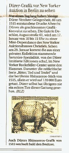 | Sacha: | @WolfDrei: Ich würde den Zaster besser für ein lebendes Panzernashorn ausgeben. Allerdings bin ich auch ein Kunstbanause....;) (16.01.2013, 15:57) | ||