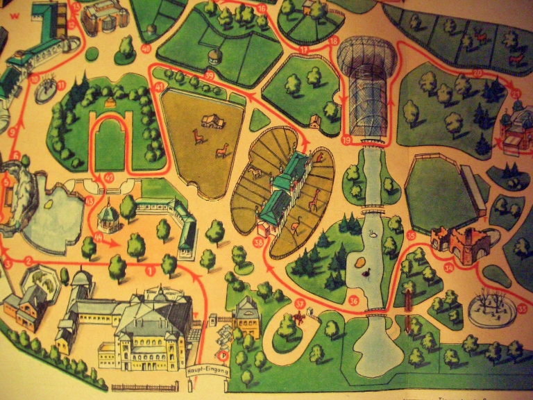 | Konstantin Ruske: | neu zu bauen wäre für bereits gehaltene Tiere: Löwenanlage auf jetziger Raubtierhausfläche, Karakalkäfige ( etwa heutiger Buntmarder); Zebramanguste( etwa heut. Löwenaußenkäf.), Nyalas/ Kronenkraniche( gegenüber heut. Aquarium, rückwärtig durch Rosarium, südlich durch Felsen begrenzt), Rotbüffel ( zwischen Rosarium und heut. Südamerikaanl.), Affenhaus( gegenüber Orang- Utanhaus, zwischen heut. Asienwiese bis auf Stelzvogelwiese) Südamerikaanl.+ Flachlandtapire( auf heut. Fläche Strauße, Watussis/ Wiese vor Pinguinen); Raubtierhaus (etwa heut. Schneeleop., Esel), Geparde II ( ( heute etwa Pumakäfig+ Glanzfasan bis zum eiscafe), Kattas ( auf Insel im Felsenteich), Vogelhaus( auf Fläche des heutigen Affenhaus mit Bartgeiern und anderen), Ziesel ( etwa heut. Sikaanl.) (28.02.2006, 00:00) | ||