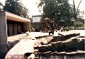 | Michael Mettler: | Indra bei gefährlichem "Sport". Alle Elefanten mit ausreichender Beweglichkeit (Sabu war durch ein steifes Vorderbein eingeschränkt) angelten regelmäßig nach Blättern und anderem Freßbaren, das jenseits des Grabens oder auf dessen Grund gelandet war. Auch wenn solche Gräben heute als "Todesgräben" gebrandmarkt werden, scheinen sich Grabenstürze trotz Akrobatiken wie der abgebildeten im Verlauf der über 30-jährigen Nutzung der Anlage in Grenzen gehalten zu haben. Der an der Hauswand gelegene Grabenausstieg in einer Schleuse zwischen den Außengehege konnte jedenfalls als Lagerraum für das Dressur-Mobiliar genutzt werden... Hinter der Betonwand auf diesem Foto befand sich übrigens einer der beiden Wirtschaftszugänge zum Elefantenhaus. Innen an der äußeren Grabenwand sind Ausstiegshilfen für die Pfleger zu sehen, und bei genauem Hinsehen erkennt man ganz rechts im Hintergrund die beiden Watussirinder in einem Gehege der alten Rinderanlagen. (17.09.2015, 08:44) | ||