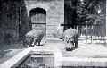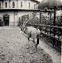 | Michael Mettler: | Mahari (später bis zu ihrem Tod in Basel, dort Mutter von Pambo). Auf diesem Bild ist zu sehen, dass die Außenanlage weitgehend gepflastert war, aber vor dem Haus eine Sandfläche enthielt. Hinter Maharis Schulter ist die Scheuersäule erkennbar, im Hintergrund erkennt man deren Gegenstück auf der Asiatenanlage. Die frei stehenden Betonwände vor der Hauswand boten eine Fluchtmöglichkeit für den Pfleger im Falle eines Angriffs in Hausnähe. In anderen Teilen der Gehege half in diesem Fall nur ein Sprung in den allseits auf relativ kurzem Weg erreichbaren Graben. Die regelmäßige Fütterung der Elefanten mit Astwerk war schon damals Standard in Hannover. (18.09.2015, 07:52) | ||