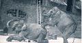 | Michael Mettler: | Siporex und Indra bei einer der damals regelmäßigen Dressurvorführungen. Der Bulle steigt hier nicht etwa über die liegende Kuh hinweg, sondern Indra robbt unter Siporex' Bauch hindurch. Mit im Bild der damalige Elefanten-Chefpfleger Rolf Amelung und jenseits des Grabens der Afrikanerbulle Kenny. (17.09.2015, 08:51) | ||