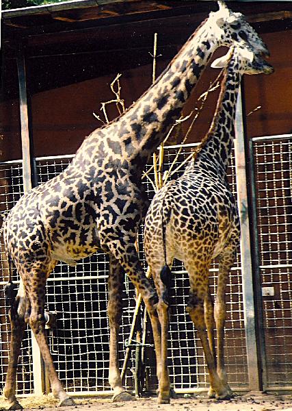 | Jelle: | Muckel Putz + Dortmunder, Zoo Givskud haelt tatsaechlich Rothschild-Giraffen (4.4 in 2004) ... aber auch schon Netzgiraffen (1.3 in 2004)! Also falls Zoo Jaderberg sich auf eine bedrohte Giraffenart spezialisieren liess, dan vermag den Zoo keine Hybriden zu zuechten. (24.08.2006, 13:57) | ||