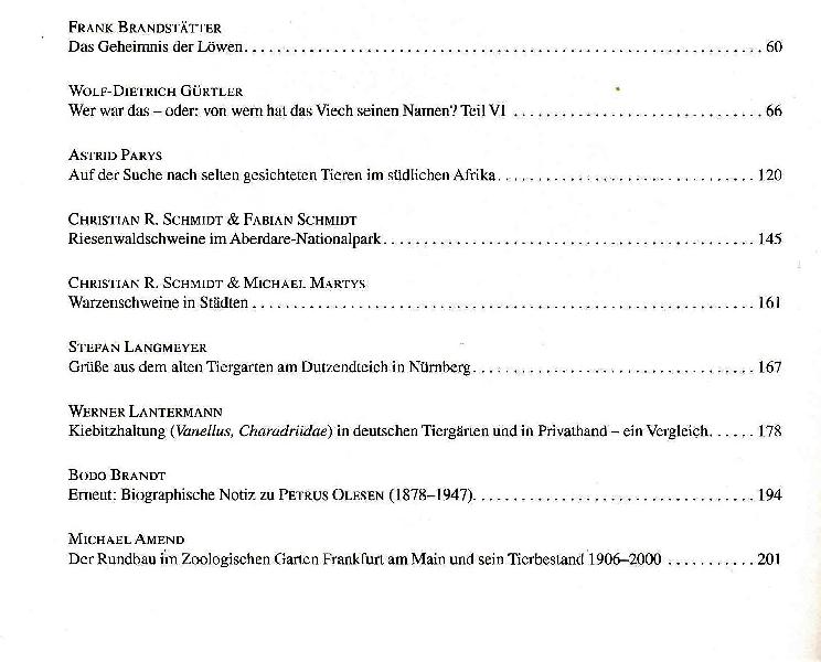 | Katharina Schmidt: | Jetzt neu bei uns im Web-Shop: Zoo Schwerin: "Anekdoten aus dem Zoo" (Wolfgang Zessin), 2007, 130 Seiten, 14,5 x 20,5 cm, Paperback, 9,90 € "Zootiere - Eingefangen mit der Kamera" (Wolfgang Zessin; Klaus-Peter Kuhn), 2007, 112 Seiten, 21 x 29,8 cm, gebunden, 24,00 € Auch aus den tschechischen Zoos gibt es Neuigkeiten: Zoo Pilsen Jahresbericht 2006, 88 Seiten, Ppb, 8,00 € Zoo Pilsen Zooführer 2006, 114 Seiten, 4,00 € "Zoo Plzen 80 let" (Martin Vobruba, Jaroslav Vogeltanz), 2006, ca. 140 Seiten, 22,3 x 30,5 cm, Gbd, 19,90 € Zoo Olomouc Jahresbericht 2006, 160 Seiten, 5,00 € "Zoo Olomouc vcera a dnes" (Milan Korinek a kolektiv), 2006, 126 Seiten, 21,5 x 30,5 cm, Gbd, 15,00 € (11.01.2008, 10:10) | ||