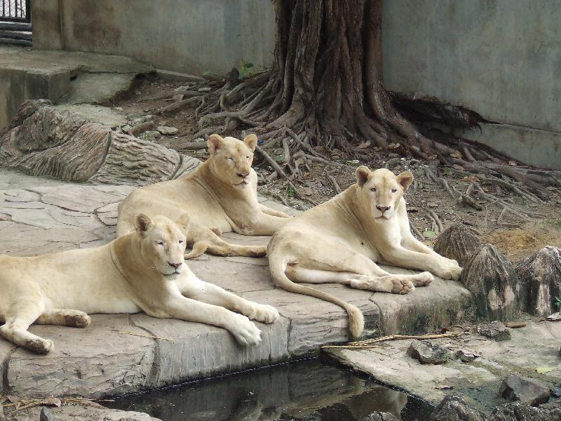 | Ralf Sommerlad: | Anbei ein Foto einiger der vielen weissen Löwen der Samutprakarn Crocodile Farm & Zoo in Thailand.Weisslinge gelten in Thailand als Glückssymbole. (10.11.2008, 17:06) | ||