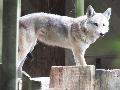 | Michael Mettler: | Die Schakale in Arnheim waren sehr schwer zu fotografieren, da ständig in Bewegung, in deckungsreichem Gehege und mit kontrastharter Beleuchtung. Daher ist das beigefügte Foto das einzige, das mir von dem wolfsähnlicheren Individuum gelang. Hätte man mir dieses Bild ohne jegliche Erläuterung zur Bestimmung vorgelegt, wäre ich eher auf Indischen Wolf o.Ä. verfallen als auf einen Goldschakal. (05.05.2009, 18:02) | ||