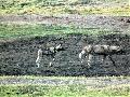 | cajun: | Danke für den Hinweis@Adrian. Zum Rest: Ich kann nur mit Freilandbildern aus dem Caprivi dienen. Also Nordnamibia, Grenze Botswana, Sambia, Simbabwe. Wildhunde als Motiv sind auf Safaris so etwas wie der "Heilige Gral", man sieht sie in der Regel nicht. Ich hatte 2012 das unglaubliche Glück, auf dem Rückweg zum Camp ein Rudel mit Jungieren an einer Wasserstelle vorzufinden. Entfernung war recht groß.. Ein paar Fotos mal hier eingestellt. (01.07.2021, 14:12) | ||
