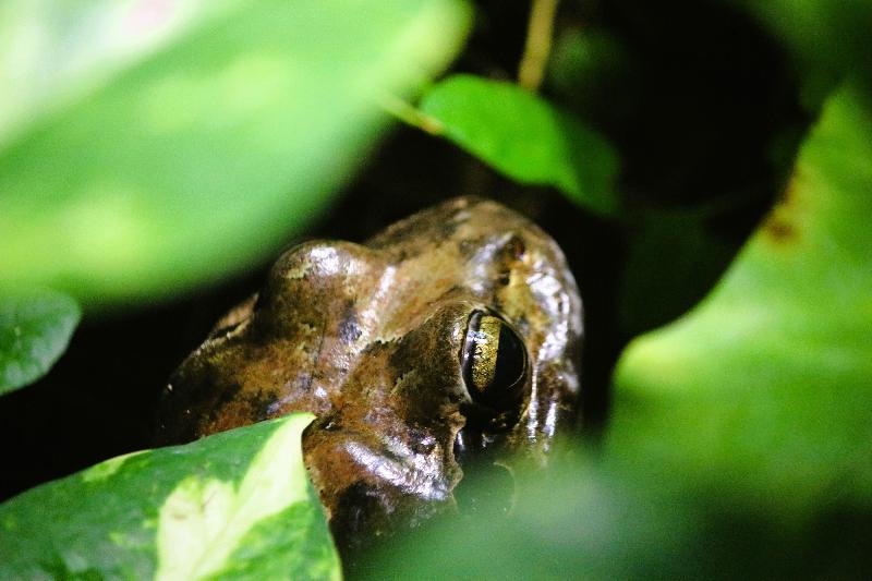 | Simon Kirchberger: | Dazwischen liegt das Terrarium, von außen ein grauer Plattenbau, von innen schon schöner. Recht große Terrarien, meistens in Dschungeloptik, auch bei Kragenechsen… An sich aber ein schöner Besatz, von Antillen-Ochsenfrosch über Philippinen-Segelechse, Treppennatter, China-Alligator bis zur Nil-Weichschildkröte und natürlich vieles mehr. Etwas schade: bei manchen Krokodilbecken liegt der Teich nach hinten und fast nicht einsehbar, Breitschnauzenkaiman und Glattstirnkaiman blieben also verborgen. Als Anbau dann die Krokodilhalle mit Siam- und Leistenkrokodil und Geierschildkröte. Anbei: Antillen-Ochsenfrosch (17.09.2022, 19:42) | ||