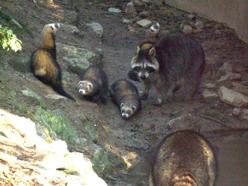 | W. Dreier: | Von einer Dauerbesucherin vor dem Gehege der Buntmarder gehört: Gegen 13 Uhr gibt es die Mittagsmahlzeit - u.a. tote weiße Ratten. Durch Zufall lagen die wohl auf dem Bauch. Kommt eine Besucherin: ``Also, ich verstehe das nicht, Warum haben denn die weißen Mäuse eine so große Anlage?`` (21.07.2017, 19:47) | ||