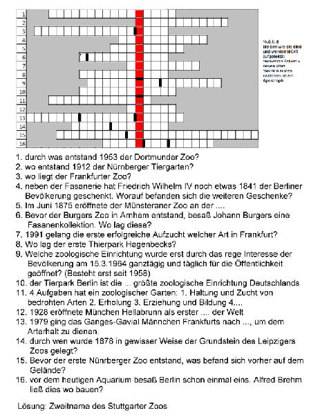 | Ronald Masell: | jetzt habe ichs auch gemerkt.hier meine frage:Bei welcher Tiergartengründung in Deutschland leistete der damalige Vorsitzende des Tier-und Pflanzengartens Hamm, Fritz Vogel,Schützenhilfe? (09.06.2010, 10:50) | ||