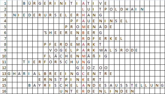 | Carsten: | Das Datum von Michael reduziert die Zahl auf fünf Zoos, bin aber trotzdem ziemlich ratlos. Werd noch ein bißchen wühlen, und dann einen Schuß ins Blaue riskieren... (05.12.2006, 12:10) | ||