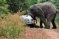 | W. Dreier: | Das ist Ele-Bulle Marula aus dem Pilanes-NP. Der mag keine VW-Autos bestimmten Typs.. Das Resultat (01.01.2023, 10:41) | ||