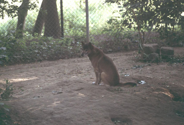 | Michael Mettler: | Ich habe heute erstmals den Tiergarten Halberstadt besucht und dabei auch die Dingos gesehen, drei Tiere zusammen im Gehege. Der alte, um die Schnauze herum bereits grauhaarige Rüde ist ein etwas dunkleres Tier, die beiden jüngeren Dingos sind fuchsrot (eines davon siehe Foto). Leider durfte ich noch nicht allzu viele Dingos in natura sehen, aber der alte Rüde erinnerte mich mehr an einen Urwalddingo als an einen Australier. (Beide Formen wurden allerdings in Europa auch schon vor Jahrzehnten verkreuzt, z.B. sollen die Dingos in Kalletal zu diesem Mischtyp gehören.) Die beiden Neuen zeigen dagegen fast Schakal-Proportionen, das mag aber auch am Alter liegen. (26.08.2007, 22:51) | ||