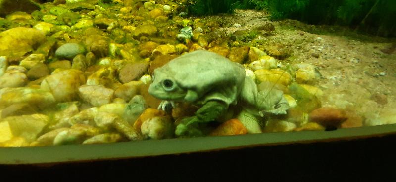 | Adrian Langer: | Danach ging es noch in den Aquazoo. Das Konzept ist sehr interessant und erinnert mich edukativ ein wenig an das Darwineum. Arttechnisch sind auch interessante Tiere dabei. So sah ich erstmals einen Papuawaran sowie den Titikakafrosch. Anbei Geißelspinne. (24.07.2020, 06:01) | ||