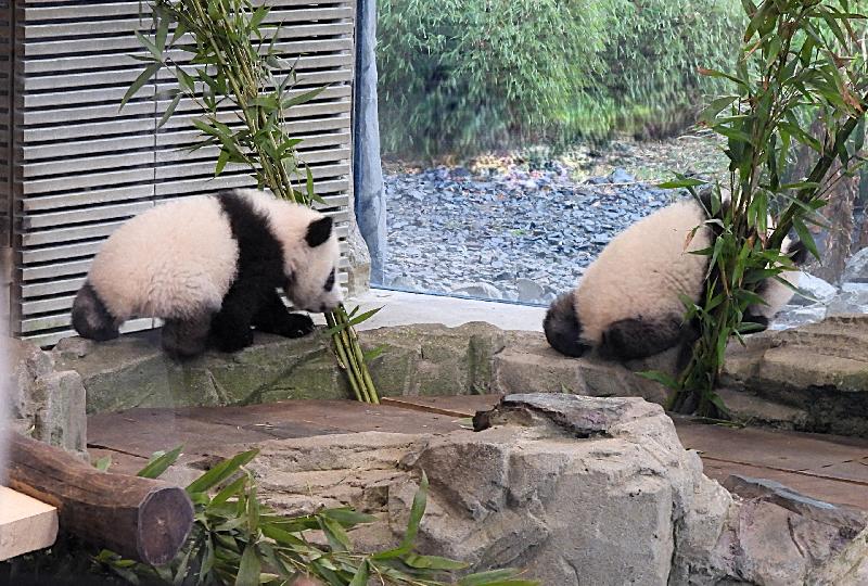 | W. Dreier: | Und die normalen Highlights? die Pandas. Man fraß schon früh - und gegen 11 bemühten sich 2 Pfleger, die Kleinen auf dem Klettergerüst in Bewegung zu bringen - was nicht so richtig gelang. (23.07.2025, 13:47) | ||