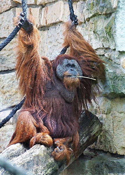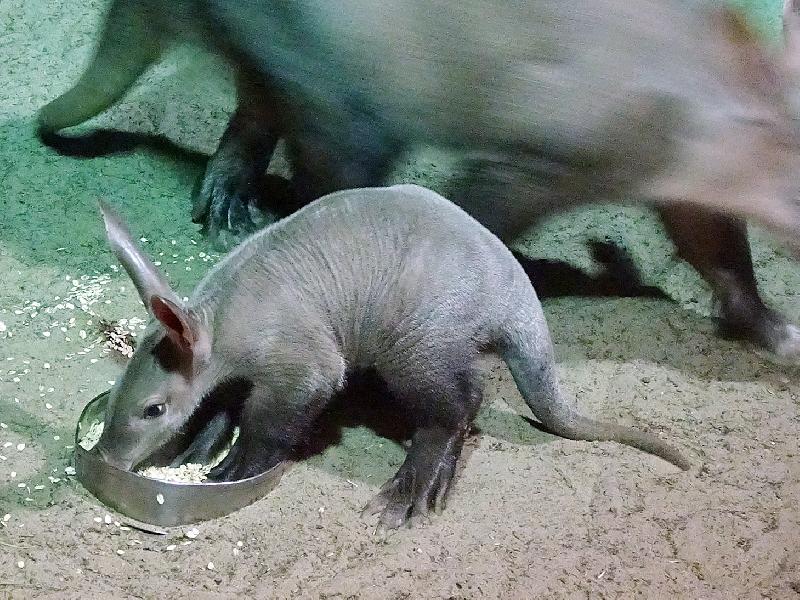 | W. Dreier: | Hier selbiges Jungtier - leider waren immer Stämme und Seile dazwischen. Übrigens wollte ich im Untergrund mir die Bambusratte vornehmen - sie ließ sich aber während der noch Lichtphase nicht sehen. Gegen 12 Uhr war es dann so duster, dass auch nach Adaptation an die Dunkelheit kaum etwas zu sehen. So dunkel war es bisher nur in Frankfurt bei meinem Erstbesuch dort. (10.03.2026, 14:08) | ||