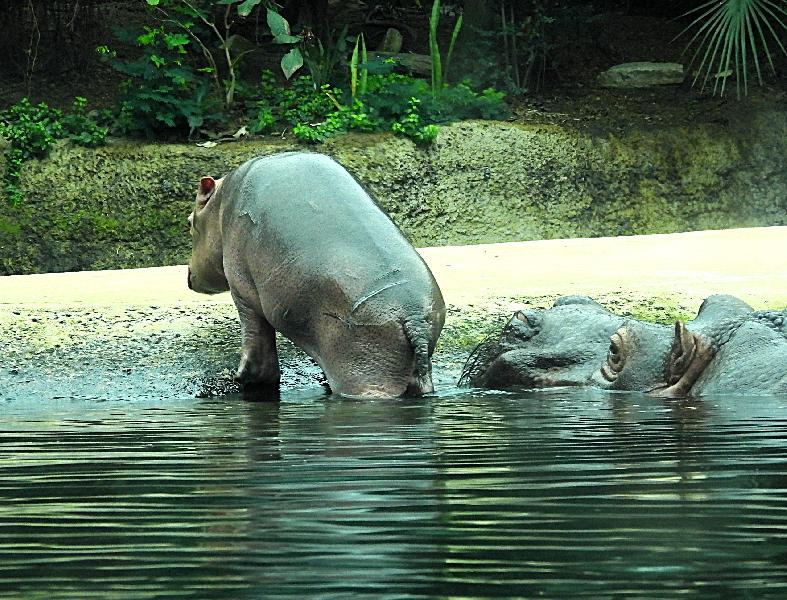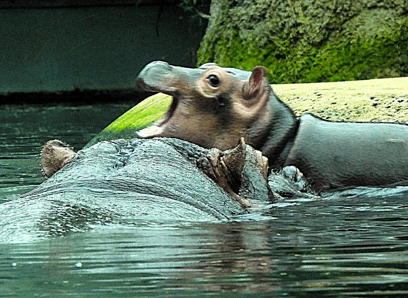 | W. Dreier: | Und ich sprang heute zur "Konkurrenz", nachdem mitgeteilt wurde, dass Freitag das Hippo-Baby in die Ausstellung käme. Beim 2. Umlauf war es dann soweit: Zunächst im Wasser: (10.11.2025, 20:25) | ||