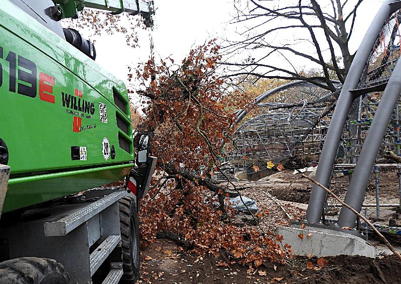 | W. Dreier: | An der Katzenfreianlage bemühte sich ein Kran, einen Eichenstamm auf die Anlage zu bringen. (10.11.2025, 21:35) | ||