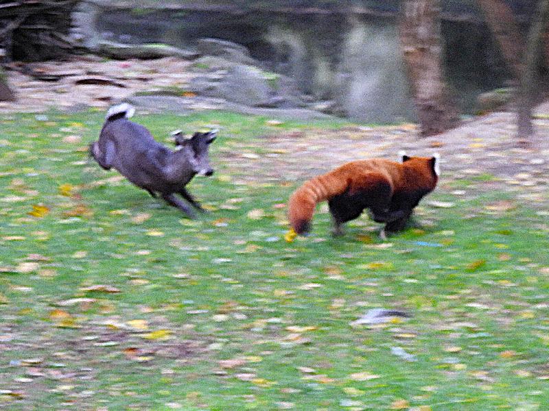 | W. Dreier: | Dann die neue "Wunsch-WG" in vielen Zoo-Anlagen: kleiner Panda und Schopfhirsch - hier noch erweitert durch Schwarzhalskraniche. (16.10.2024, 19:02) | ||