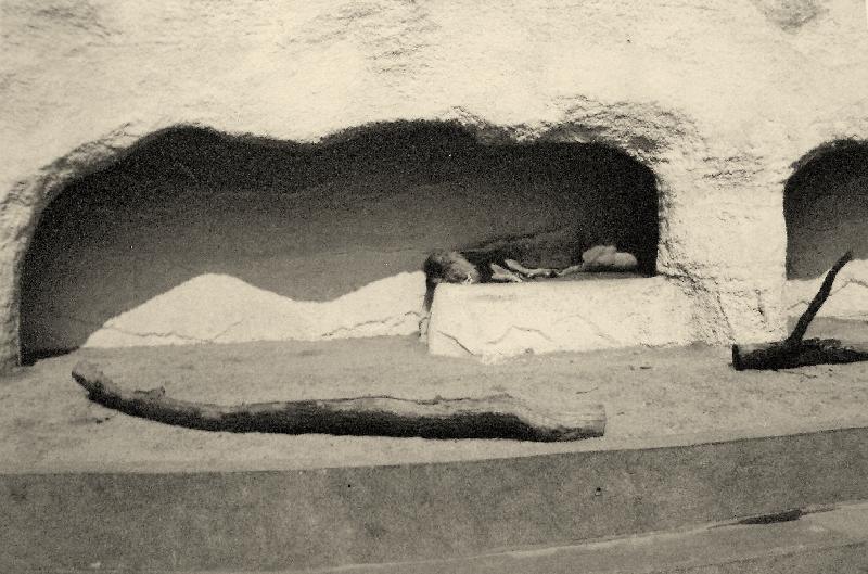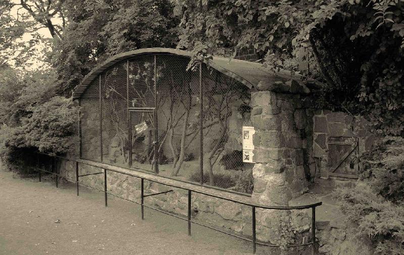 | Michael Mettler: | Die inzwischen abgerissenen Käfige habe ich 1989 noch sehen dürfen, im Gegensatz zu den unten abgebildeten hatten sie aber ein senkrechtes Stangengitter. Könnte sogar sein, dass ich davon noch ein Foto habe. Die Gitterstangen standen meiner Erinnerung nach so eng, dass nicht mal ein Waschbärarm dazwischen hindurchpasste - dementsprechend düster waren die Käfige auch. Außer Waschbären habe ich auf jeden Fall einen Goldschakal darin gesehen. (07.10.2007, 20:57) | ||
