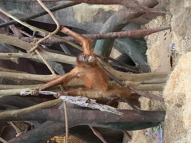 | cajun: | Ein Umzug aus Zürich nach Skandinavien: "Unser zehnjähriges Sumatra-Orang-Utan-Weibchen Mimpi ist umgezogen. In Begleitung einer vertrauten Tierpflegerin reiste sie kürzlich von Zürich nach Kristiansand in Norwegen. In ihrem neuen Zuhause, dem Dyreparken, wartete bereits das Männchen Dwi auf sie. Die beiden sollen im Rahmen der Europäischen Erhaltungszucht für Sumatra-Orang-Utans gemeinsam eine Familie gründen" Quelle:https://www.zoo.ch/de/zoonews/video-mimpi-reist-nach-norwegen (18.04.2023, 11:09) | ||