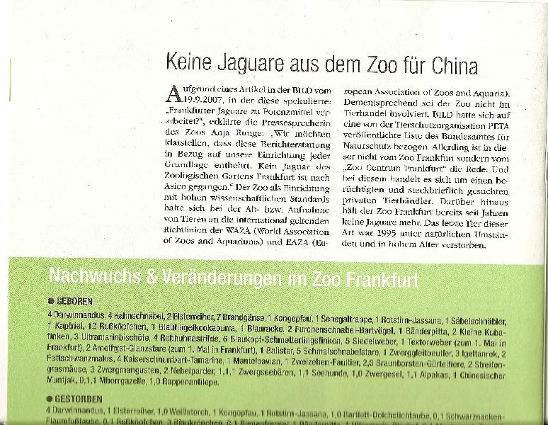 | Oliver Muller: | https://hpd.de/artikel/missstaende-zirkussen-und-zoos-15533 Der ?Humanistische Pressedienst? ruft Mitarbeiter von Zoos zum ?Whistleblowing? bei Missständen auf. Vorn mit dabei: Moralische Instanz und Universalexperte Colin Goldner. (27.04.2018, 15:15) | ||
