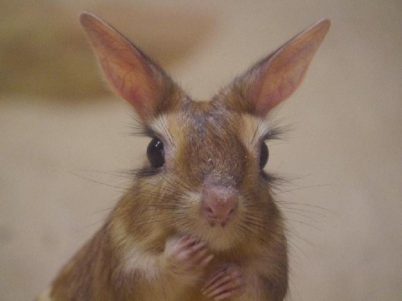 | Werner Schindler: | Da kann ich was aus dem Grzimekhaus beisteuern. Ich hatte vor einiger Zeit erläutert, dass dort das Fotografieren ohne Blitz nicht nur erlaubt, sondern zu bestimmten, planbaren Zeiten auch gut praktikabel ist und zu ordentlichen Ergebnissen führt. Als Beleg dafür ein Springhase (Ausschnittvergrößerung), am 20.9. ohne Blitz mit ca. 6400 ISO abgelichtet (siehe im Vergleich die Bilder der Art in der Zootierliste). (24.09.2011, 21:02) | ||