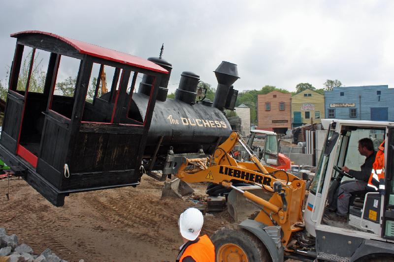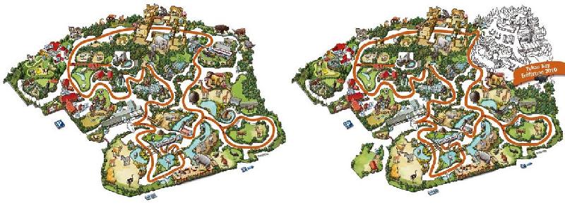 | Michael Mettler: | Vielleicht passiert ja in dieser Hinsicht noch was. Bisher gab es ja auch nicht so sehr viel, was man als ständig wechselnde Eindrücke hätte zeigen können - ein Trümmerberg sah aus wie der andere.. :-) In der neuen JAMBO wird der derzeit im Bau befindliche Baustellen-Umgehungsweg "Yukon Trail" näher vorgestellt. Der wird in Sachen Dekoration aufwändiger, als ich gedacht hatte; u.a. wird es dort eine "Goldmine" und ein "Sägewerk" geben. Eröffnung soll im Spätsommer sein. Das "Yukon Tourist Information Center" im Blockhüttenstil ist für September geplant und steht dann - der Zeichnung nach zu urteilen - dichter an der Rückseite der Tigeranlage als der bisherige Info-Container. (30.03.2008, 10:05) | ||